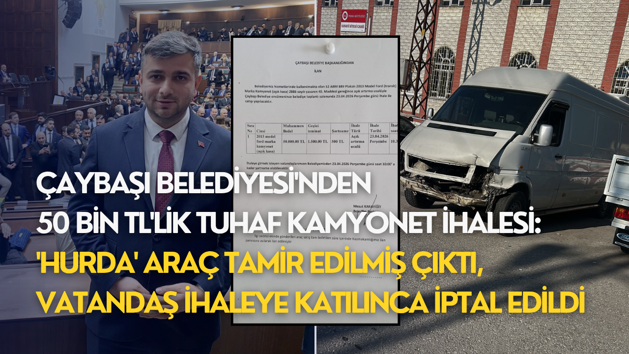Çaybaşı Belediyesi tarafından 52 ABM 889 plakalı 2013 model Ford Transit kamyonet için 23 Nisan 2026 tarihinde açık artırma usulüyle satış ihalesi yapılacağı duyuruldu. Muhammen bedeli 50 bin TL olarak belirlenen araçla ilgili süreç, başından itibaren tartışmalara neden oldu.