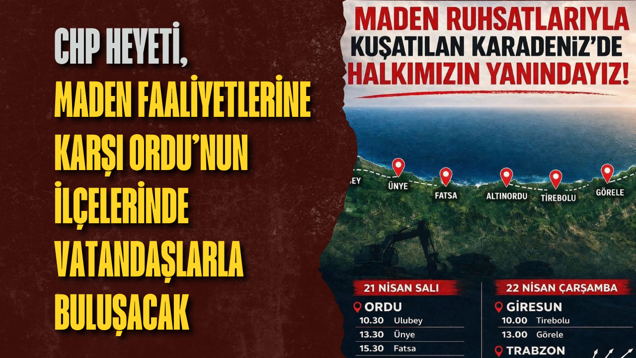 Cumhuriyet Halk Partisi (CHP), Karadeniz Bölgesi’nde artan maden ruhsatlarının yol açtığı çevresel tahribata dikkat çekmek amacıyla saha programı başlatıyor. Parti üst yönetiminden isimlerin yer aldığı heyet, bölge halkıyla buluşarak talepleri yerinde dinleyecek.