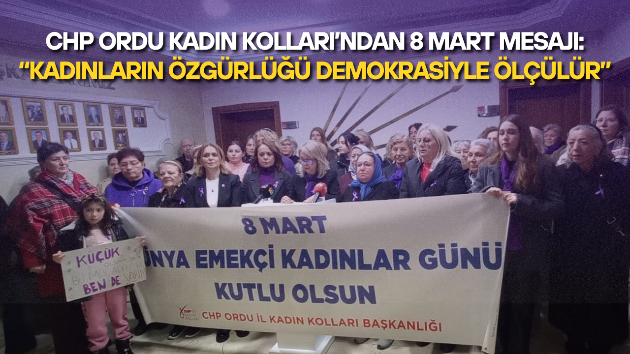 Cumhuriyet Halk Partisi (CHP) Ordu İl Kadın Kolları, 8 Mart Dünya Kadınlar Günü’nde kadınların karşı karşıya olduğu sorunlara dikkat çekti. CHP Kadın Kolları Başkanı Nilgün Yılmaz imzasıyla yapılan açıklamada, şiddet, yoksulluk, güvencesizlik ve görünmeyen emek sömürüsü gibi sorunların kadınların yaşamını zorlaştırdığı vurgulandı.