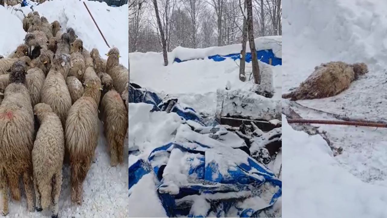Yoğun kar nedeniyle çöken ağılda bazı koyunlar hayatını kaybederken, besici durumu yaptığı sosyal medya paylaşımıyla duyurdu.