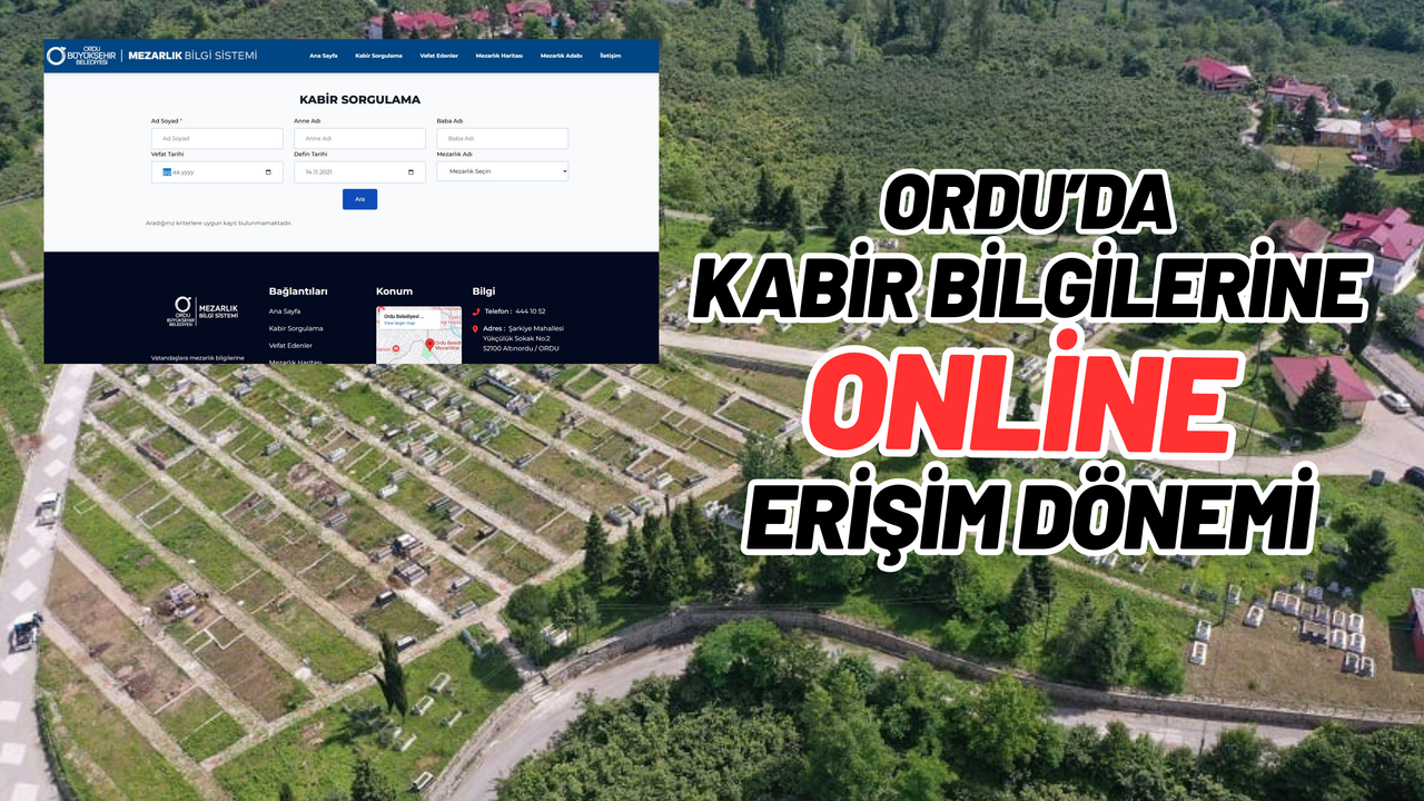 Vatandaşlar, Mezarlık Bilgi Sistemine https://mebis.ordu.bel.tr/ adresi üzerinden erişim sağlayabiliyor.