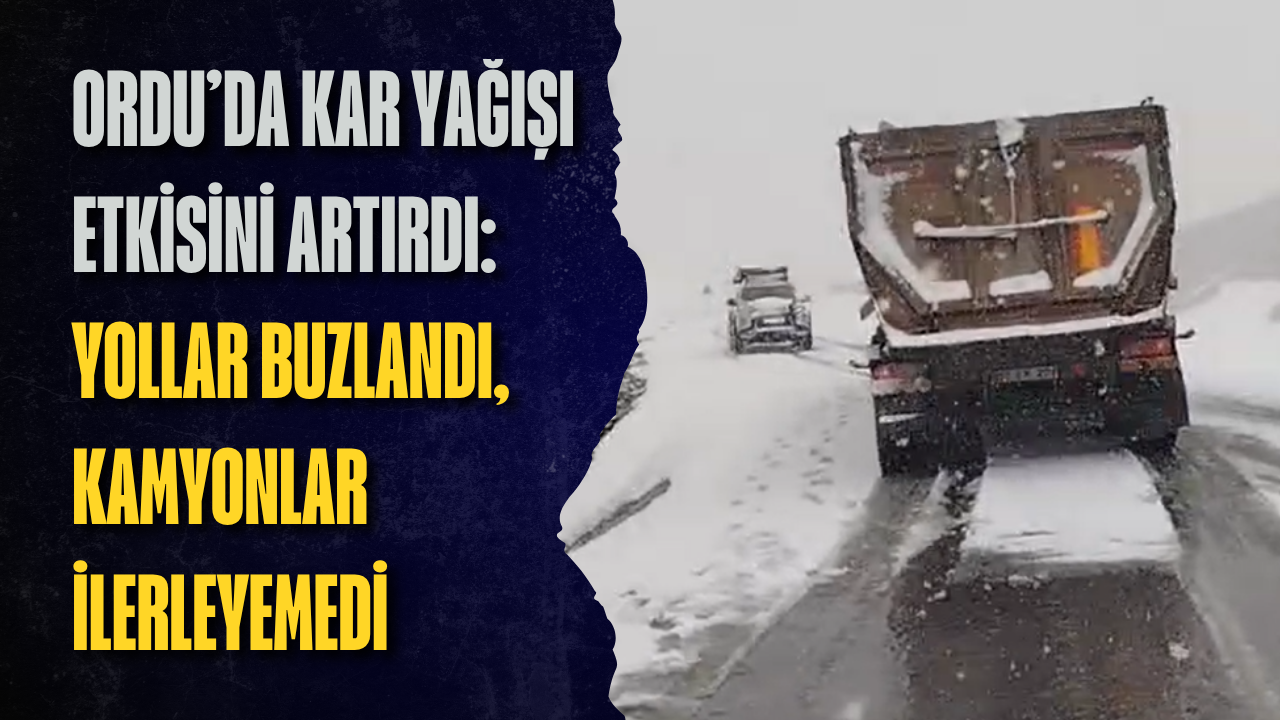Yoğun kar nedeniyle bazı yollar beyaza bürünürken, ağır tonajlı kamyonlar rampalarda ilerlemekte güçlük çekti.