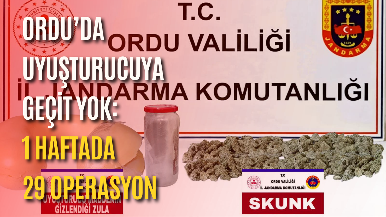 Ordu İl Jandarma Komutanlığı sorumluluk bölgesinde 06-12 Nisan 2026 tarihleri arasında yürütülen narkotik suçlarla mücadele çalışmaları kapsamında önemli sonuçlar elde edildi.