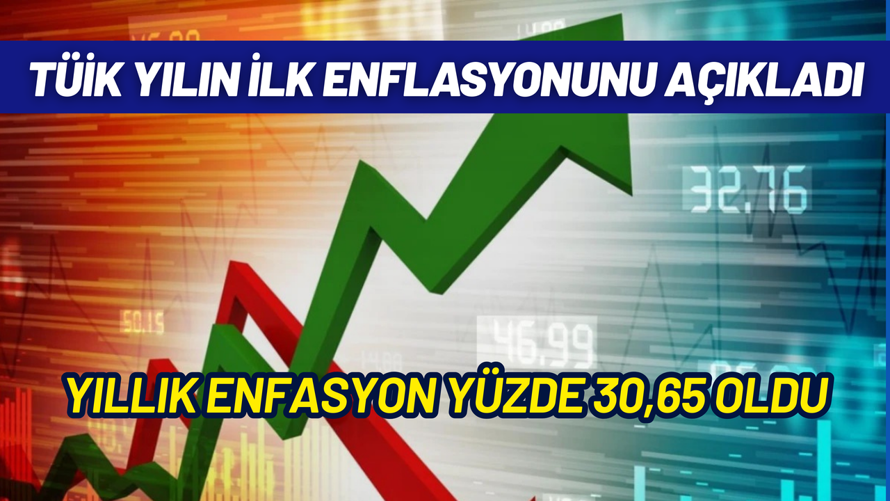 Buna göre, Ocak 2026'da Tüketici fiyat endeksi (TÜFE) aylık 4,84 yıllık enflasyon yüzde 30,65 oldu.